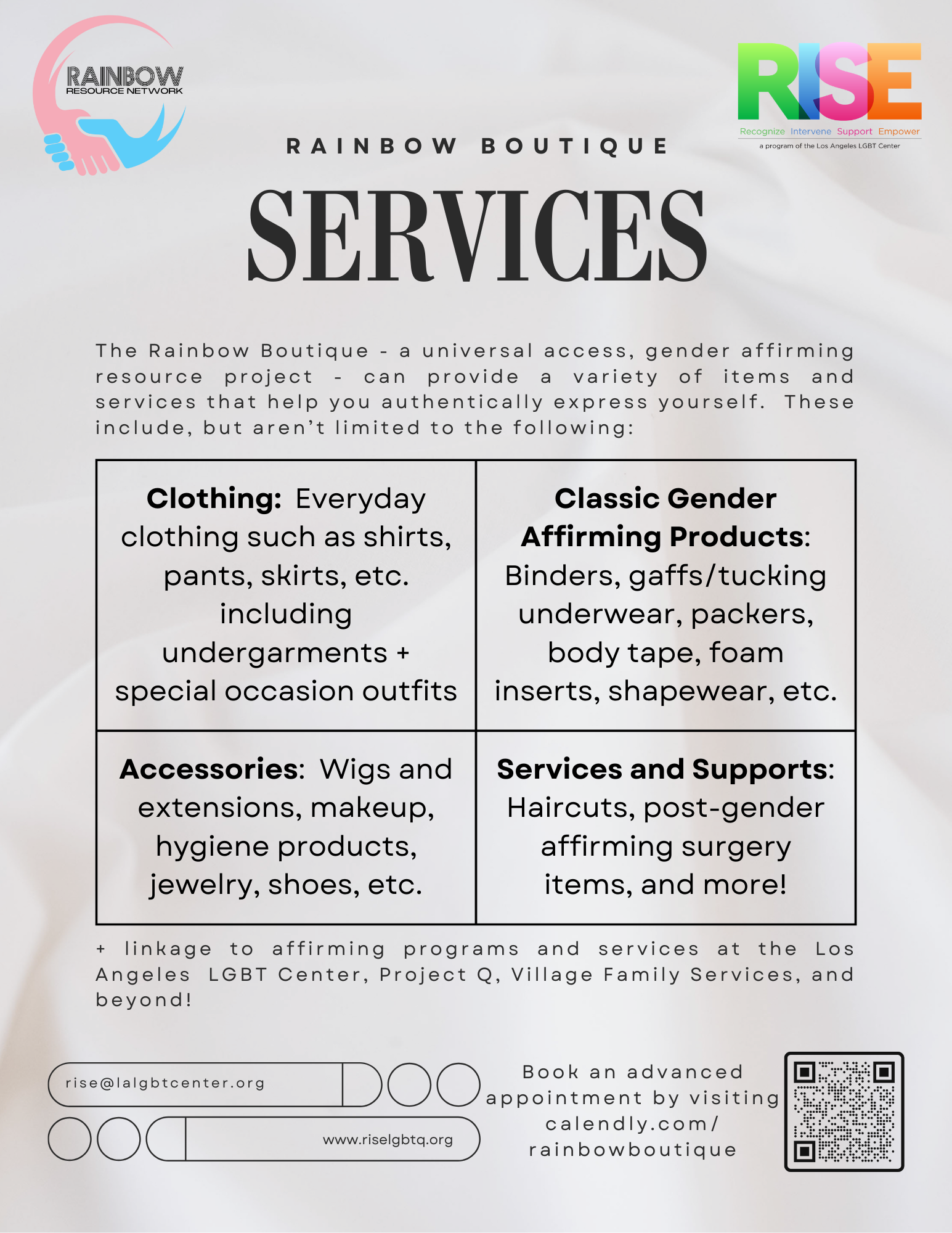 + linkage to affirming programs and services at the Los Angeles LGBT Center and other Rainbow Resource Network partners.